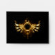 Shiny mechanical wings, with gears and brass round banner. Steampunk