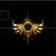 Shiny mechanical wings, with gears and brass round banner. Steampunk