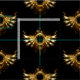 Shiny mechanical wings, with gears and brass round banner. Steampunk