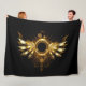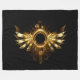 Shiny mechanical wings, with gears and brass round banner. Steampunk
