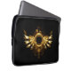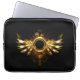 Shiny mechanical wings, with gears and brass round banner. Steampunk