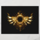 Shiny mechanical wings, with gears and brass round banner. Steampunk