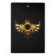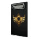 Shiny mechanical wings, with gears and brass round banner. Steampunk