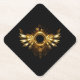 Shiny mechanical wings, with gears and brass round banner. Steampunk