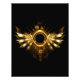 Shiny mechanical wings, with gears and brass round banner. Steampunk