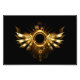 Shiny mechanical wings, with gears and brass round banner. Steampunk