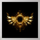 Shiny mechanical wings, with gears and brass round banner. Steampunk