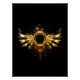 Shiny mechanical wings, with gears and brass round banner. Steampunk