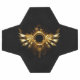 Shiny mechanical wings, with gears and brass round banner. Steampunk