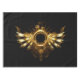 Shiny mechanical wings, with gears and brass round banner. Steampunk