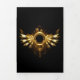 Shiny mechanical wings, with gears and brass round banner. Steampunk