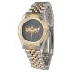 Shiny mechanical wings, with gears and brass round banner. Steampunk