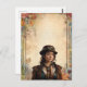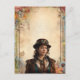 A woman in a steampunk style on a vintage floral stationary paper AI generated art