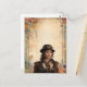 Steampunk Woman and Vintage Floral Stationary Postcard
