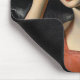 A steampunk mouse pad of a beautiful steampunk woman in a red dress and gears on her head.
