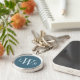 Subtle slate blue pinstripes make a classic monogram a little more special on this premium keychain. This is the perfect gift for your groomsmen or ushers. Makes a great favour or stocking stuffer too. Add or reduce space between the first and last initials to leave enough space for the large monogram. Available in alternate colours with matching products.