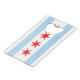 Enhance your gatherings with our steel bottle opener featuring the distinctive flag of Chicago! Crafted with attention to detail, this bottle opener proudly showcases Chicago's flag design. The flag features light blue and white horizontal stripes with four red stars in the middle stripe, symbolising historical events and features of the city.