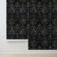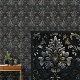 Steel Grey Bronze on Black Dramatic Gothic Damask Wallpaper