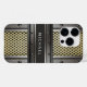 A cool rough industrial style for guys, men. Grey faux steel and gold looking metal and rivets. Add your name, white letters.
