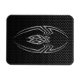 This metallic spider is designed with long sharp points and simple stylish lines. The metal arachnid has four of its legs reaching up and four pointing down creating and aggressive, symmetrical pattern. The spider sits on a steel mesh background which creates a sleek industrial look.