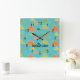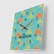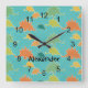 Fun colourful clock with cute dinosaurs on blue and green dotted background. Personalise it with your child's name in the easy Zazzle text editor. Your choice of round or square.