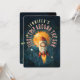 Blast off into a universe of joy with our Stellar Celebration Birthday Invitation, marking the first orbit around the sun! This invitation sets the scene for an out-of-this-world party with its charming front illustration of a smiling baby astronaut in a whimsical rocket ship, soaring past sunbursts of tangerine, gold, and dandelion. The celestial backdrop is a galaxy of indigo, navy, and midnight blue, peppered with twinkling stars and distant planets. Flip to the back for all the essential party details, elegantly arranged with star-like dots and set against the deep blue of space, highlighted with text in shades of sunny yellow and warm ivory. This invitation is not just a call to a party; it's an invitation to embark on a galactic adventure, celebrating a year of growth and wonder!