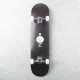 A steller blue jay standing on an oak branch. The design has the bird looking to the left, a mirror image of the bird is done in the upper right a grayscale watermark, an ideal location for a monogram. The oak branch has two green oak leaves, and two brown acorns.