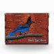 A primitive, or folk-art-style, image of a Steller's Jay (Cyanocitta stelleri) on the reddish inner or reverse side of the bark of a paper birch (Betula payrifera). Add your own text.