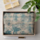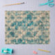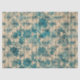 Blue/green stencil designed flowers over a background of cursive writing and bees. The background is a light tan. Perfect for decoupage, crafts, or gift wrapping. Make sure to check out the matching gift bag!