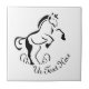 Stenciled Black Horse Rearing with Dust Swirls Tile