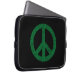 Stencilled Peace Symbol - Dk Grn on Blk Laptop Sleeve