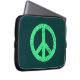 Stencilled Peace Symbol - Mint Grn on Dk Grn Laptop Sleeve