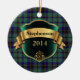 Colourful plaid ceramic ornament, with the traditional colourful clan Stephenson tartan plaid pattern, as a background. Graphics of a hunter green and gold tone shield like plaque, has custom black and gold tone text ready to personalise. Great looking family heirloom ornament. Makes a great gift ornament and decoration for other uses around the house.