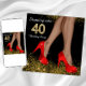 Black and gold stepping into 40 birthday party invitation with elegant legs and red high heel shoes on a beautiful black glitter background. You can easily customise this elegant black and gold stepping into 40 birthday party invitation for your event by simply adding your details in the font style and colour, and wording of your choice. You can also change the background colour. This is a printed design with no real diamonds, jewels, glitter, etc.