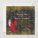 Beautiful black and gold stepping into 60 birthday party invitation with elegant champagne glass, and red leopard high heel shoes on a beautiful draped black glitter satin background. You can easily customise this elegant black and gold stepping into 60 birthday party invitation for your event by simply adding your details in the font style and colour, and wording of your choice. You can also change the background colour.
