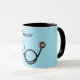 The stethoscope with a custom name ringer mug is for those in the medical profession. Doctors, nurses, and other health professionals. Nice gift to give to the new graduate. This mug can be changed to any of the variety of styles. Change the colour background and name. Even the image of the stethoscope can be enlarged or made smaller or switch it for your own image.