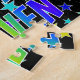 This fun, exciting, birthday-themed jigsaw puzzle design has the message "HAPPY BIRTHDAY, STEVEN" with the characters having a colourful rainbow spectrum inspired gradient pattern, along with a vibrant stars background pattern. A colourful puzzle like this might be a fun way to send birthday wishes to somebody named Steven. [~Z0000468]
