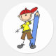 A cool stick figure design featuring a stick figure boy holding a big blue pencil. You can customise this design using the easy customisation tool.