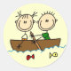 Cute stick figure fishing theme T-shirts, mugs, tote bags, cards, stickers, magnets, and more featuring a stick figure boy and girl fishing from a boat, great for anyone who loves stick figures and fishing.