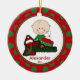 Baby's First Christmas Ornament features a cute stick figure baby boy with a huge red & green ornament set on a red & green polka dotted background! Personalise with your baby information and date and you're all set to go! Wonderful dated keepsake gift for your baby's 1st christmas.