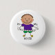 A cute stick figure birthday design button featuring a stick figure boy with brown hair in a purple shirt, green shorts, and text that reads It's My Birthday. Add your child's name easily to customise this cute stick figure birthday T-shirt!