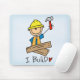 Stick figure carpenter/construction worker with hammer and boards with text 'I build'. Customise the background or add a name or text. Available on a variety of products from t-shirts, hoodies, mugs, mousepads, buttons, stickers and more.