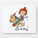 A stick figure cowgirl in red cowboy hat and boots rides the mechanical bull and text reads "Yee Haw!" on customisable stick figure cowgirl tote bags, mugs, mousepads, stickers, aprons, magnets, buttons, and cards!