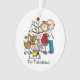 An adorable Christmas holiday stick figure acrylic ornament features the front with a stick figure dad, expectant mum, little girl in nightgown with teddy bear, baby boy, and family dog in front of the decorated holiday tree. It also has an area you can add your family name before ordering. The ornament back features the same design with an area you can easily customise to say Christmas 2014 or the current year. This cute stick figure family Christmas holiday acrylic ornament is a great gift for yourself or for grandparents and other family members and friends!