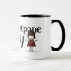 Cute stick figure girl with a white coffee cup, hair, sneakers, plaid dress, pearl necklace and joy quote