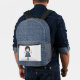 Stick Figure Girl With Daisies and Blue Denim Printed Backpack