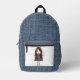 Stick Figure Girl With Daisies and Blue Denim Printed Backpack