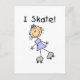 A stick figure girl on roller skates and kid style text that reads "I Skate" is featured on these cute skating theme T-shirts, mugs, mousepads, bags, cards, and more. stickers, keychains, and other drummer apparel and gifts!