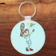 A male stick figure tennis player on a Stick Figure Men's Tennis keychain with a light blue background.