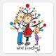 A cute stick figure design, great for parents of a toddler girl who are expecting baby number two! Features a stick figure dad, expectant mum, and toddler girl in front of the holiday tree. Text reads We're Expecting!